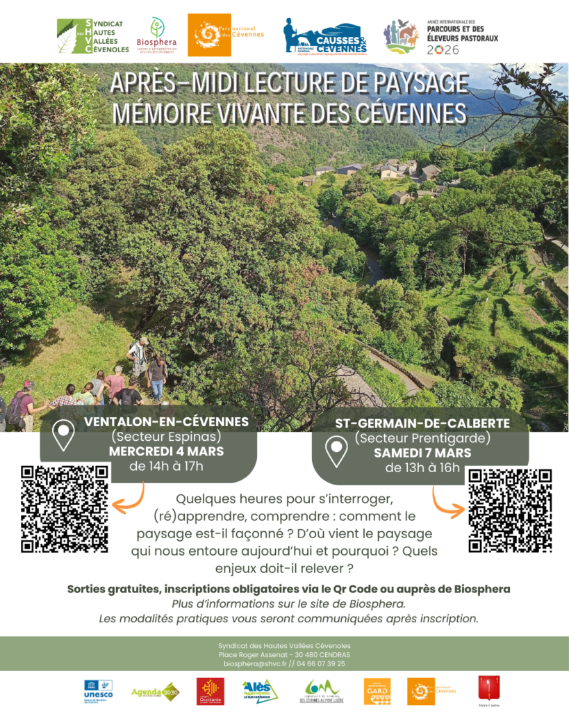 Sur inscription avec ce lien : https://framaforms.org/inscription-lire-le-paysage... ou via la chargée de mission agriculture et territoire au 04 66 25 40 69 ou par mail à agriculture@shvc.fr